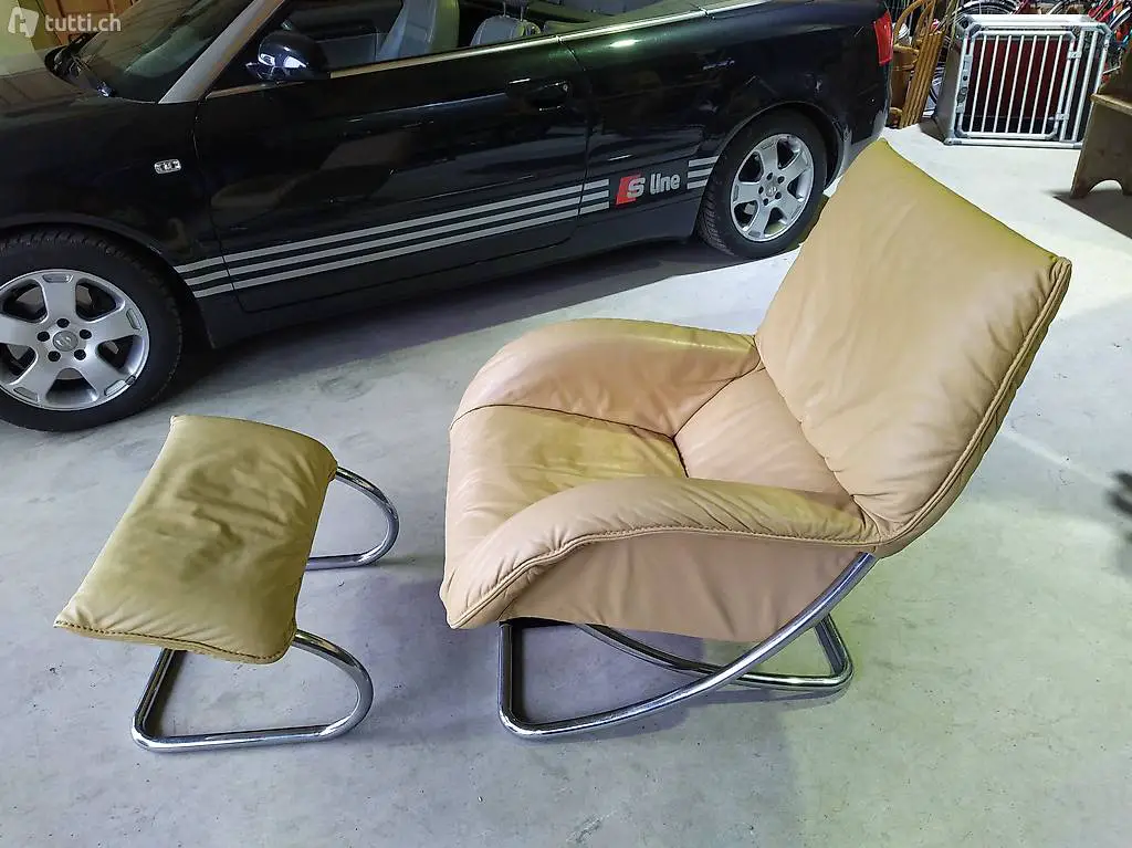 Vintage Leder Design Sessel mit Schaukelfunktion + Fussteil