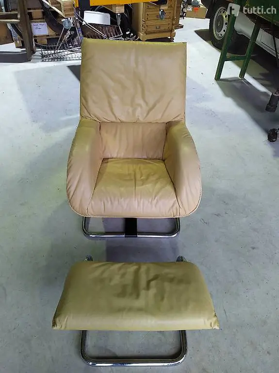 Vintage Leder Design Sessel mit Schaukelfunktion und Fussteil