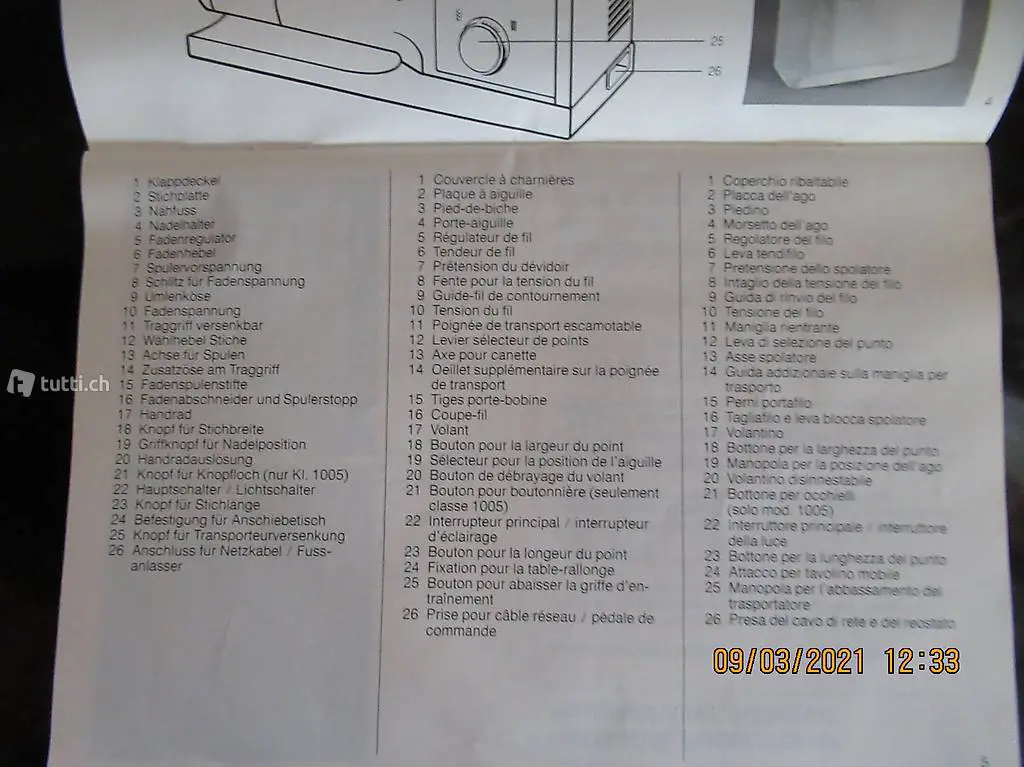 Gebrauchsanleitung für BERNINA Nähmaschine 1005 1004