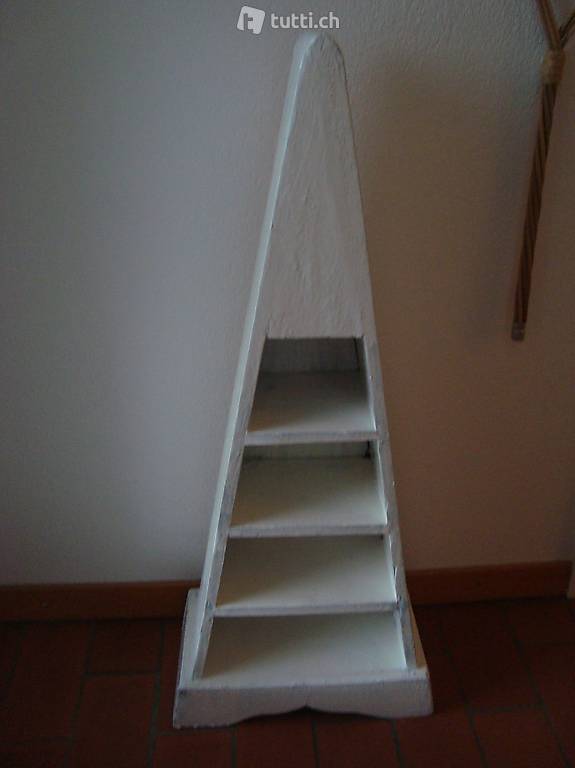 Dieses kleine Möbel / Kleinmöbel / Pyramide hat die Masse 34 x 18 cm, Höhe 78 cm. Ist alt und frisch lackiert, mit feinem Glanz. Hat in fast jeder Ecke Platz. Kann auch sehr schön auf einer Kommode oder Tisch platziert werden mit Deko. In sehr gutem Zustand, stabil. Passt auch zu shabby chic.