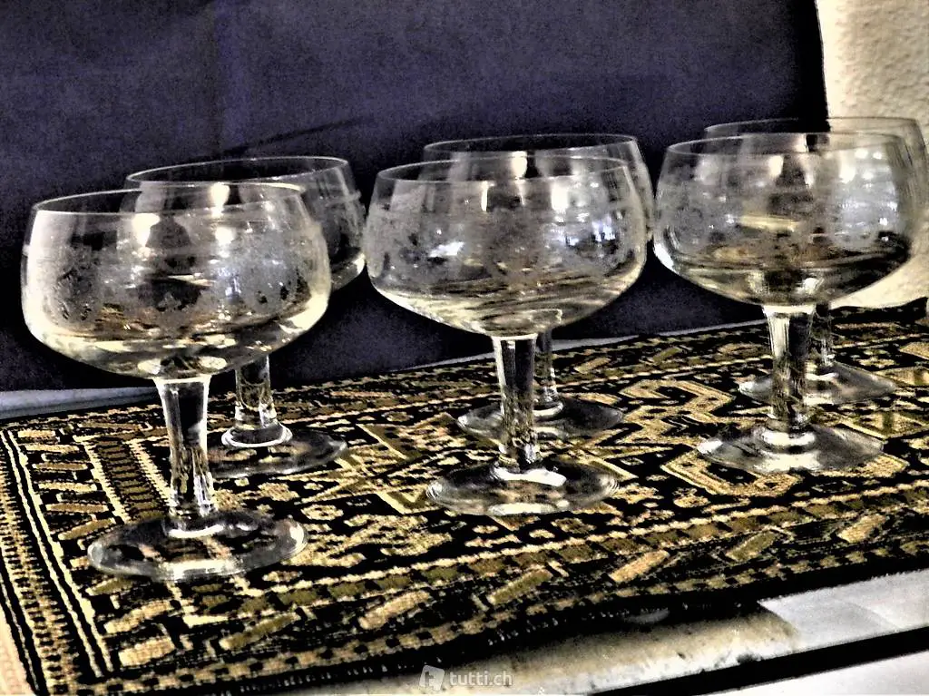 "AUS LIQUIDATION" 6 antike Coupen-Gläser. H. 11 cm. D. 8 cm. Sehr guter Zustand. Abholen oder Postversand. (Bitte beachten Sie auch meine anderen Inserate )