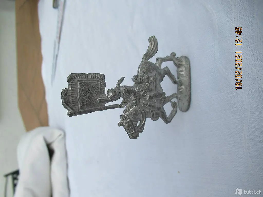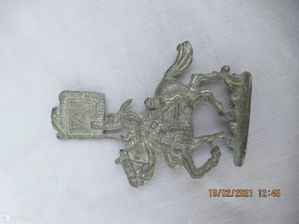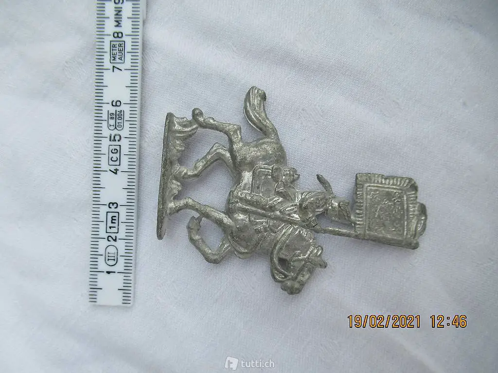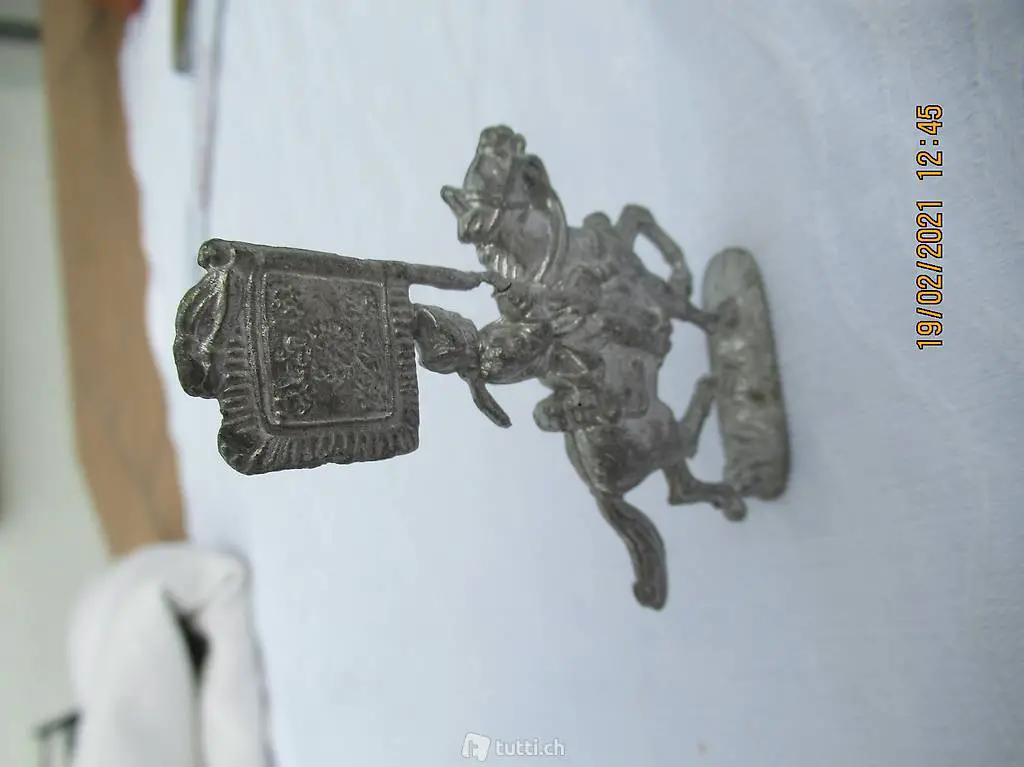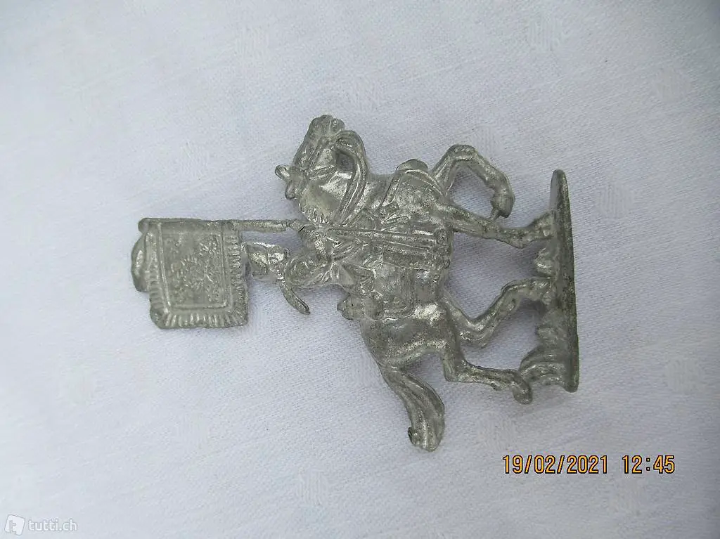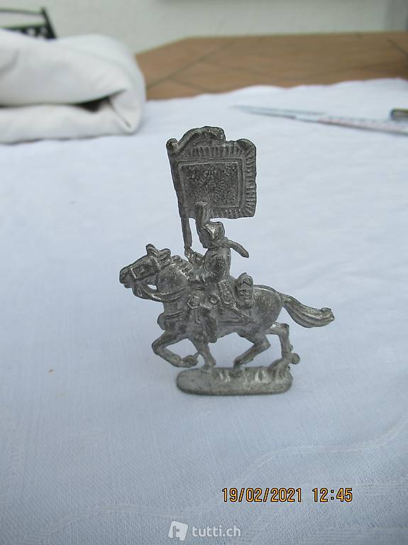 Reiter mit Fahne auf Pferd, Reiter mit Flacke auf Pferd, eine schwere Zinnfigur zum Sammeln,