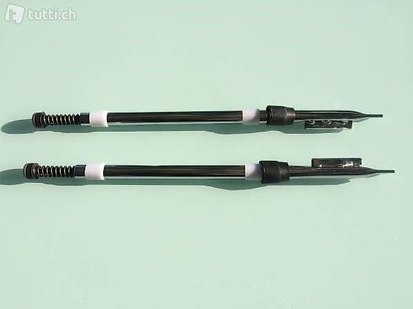 Das Set besteht aus linkem & rechtem Gabelholm, Federeinsätzen, Abdeckhülsen, Gummifedern und Gleitbüchsen.