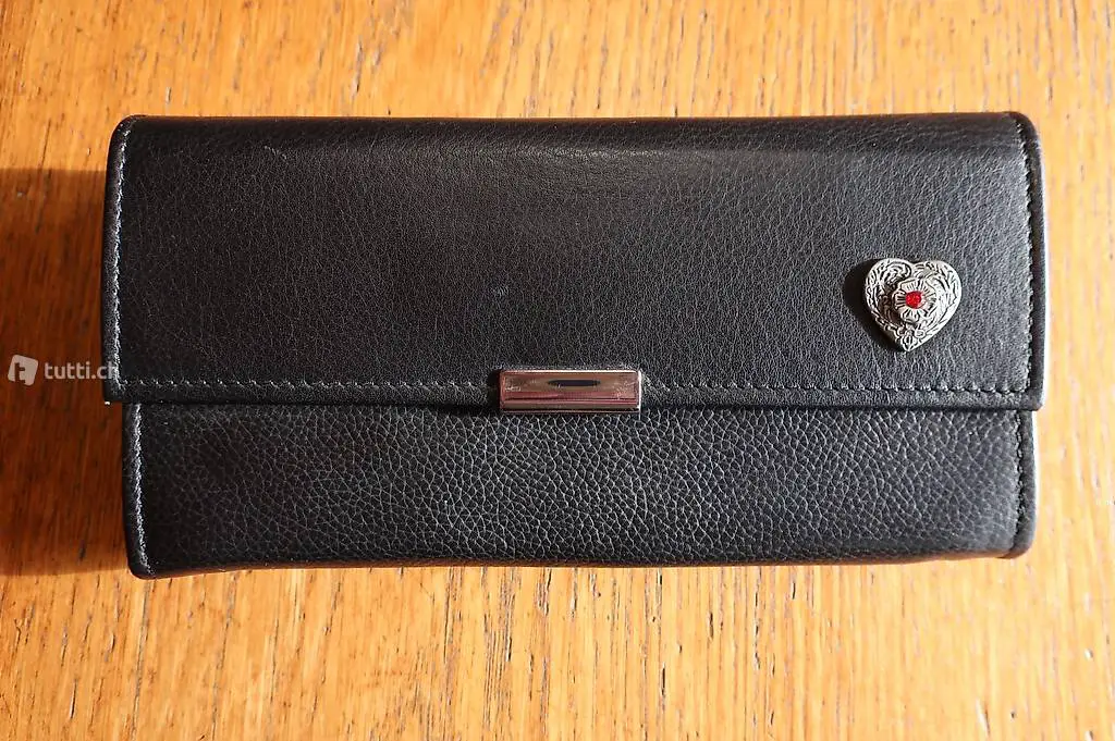 Portemonnaie schwarz mit Magnetverschluss mit Herz Niete