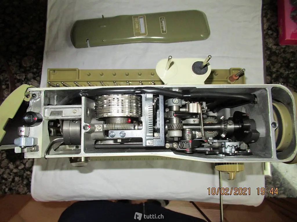 Maschine hat ein Kniehebel, und kein Fusspedal, Koffer ist auch dabei, ebenfalls die