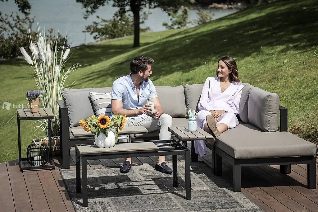 Das Alu Lounge Set Vivienne in Stone Grey oder Weiss erhälltich.