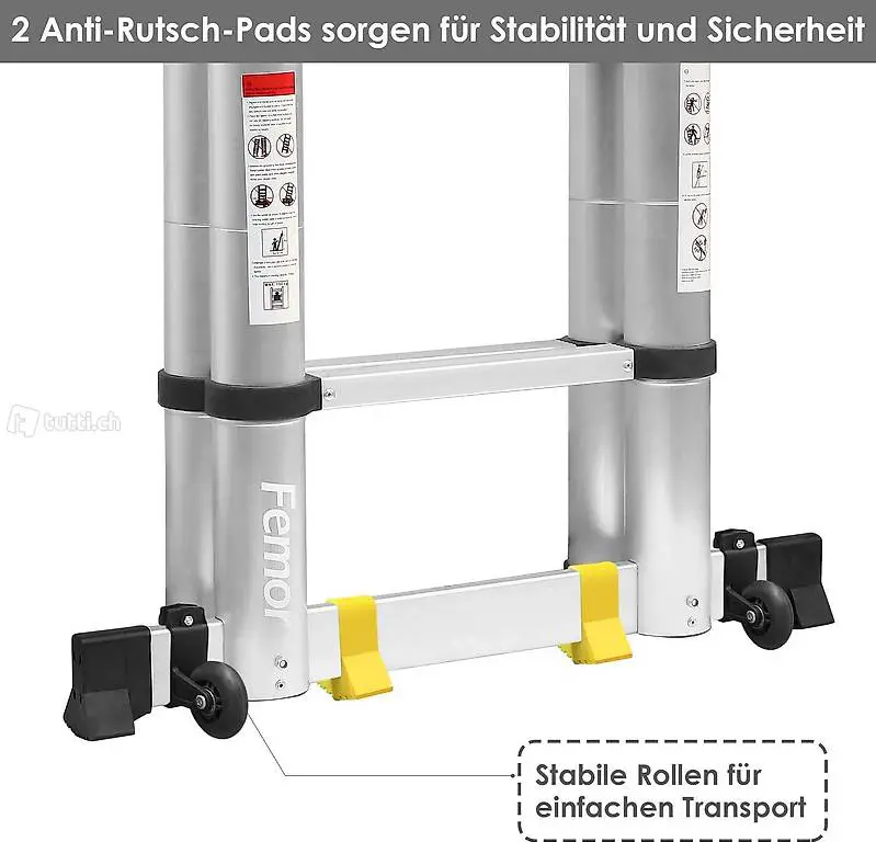 Leiter Teleskop-Design 150 kg Belastbarkeit mit 2 Rollen