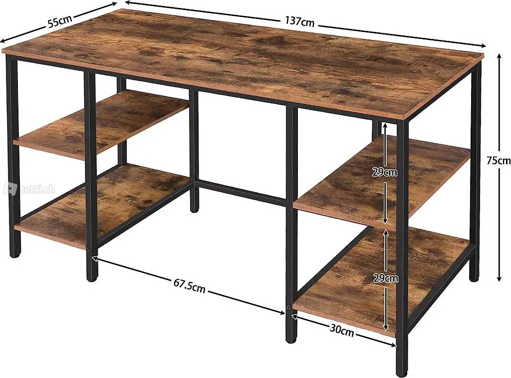 Bürotisch mit 4 Ablagen, 137 x 55 x 76 cm stabiler