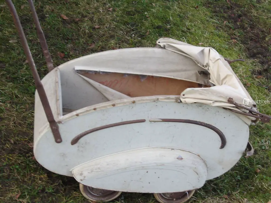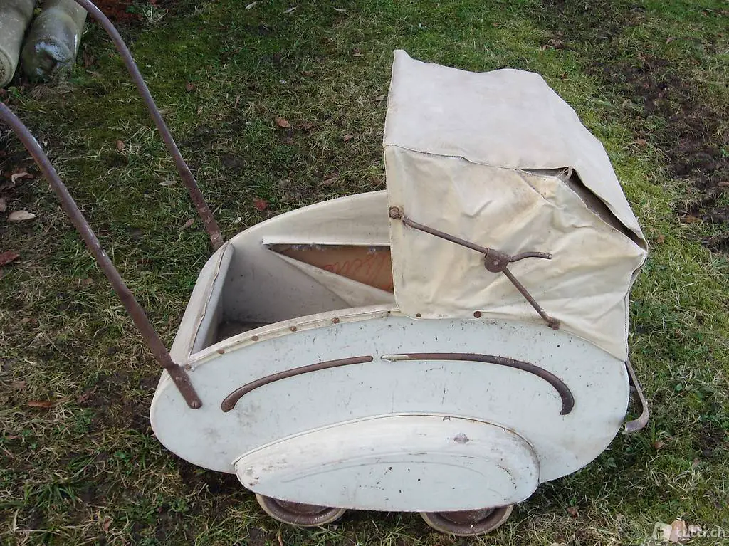 antiker Kinderwagen mit Bremse / um 1950