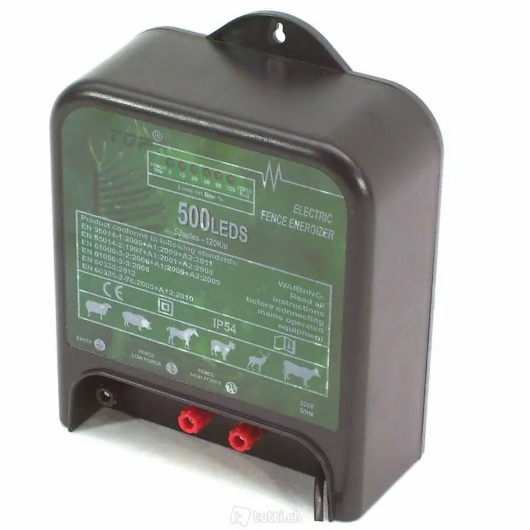 Das neue leistungsstarke Elektrozaungeräte 500LED bietet eine extra grosse Reichweite für sehr grosse Zaunkabellänge bis 120 km.