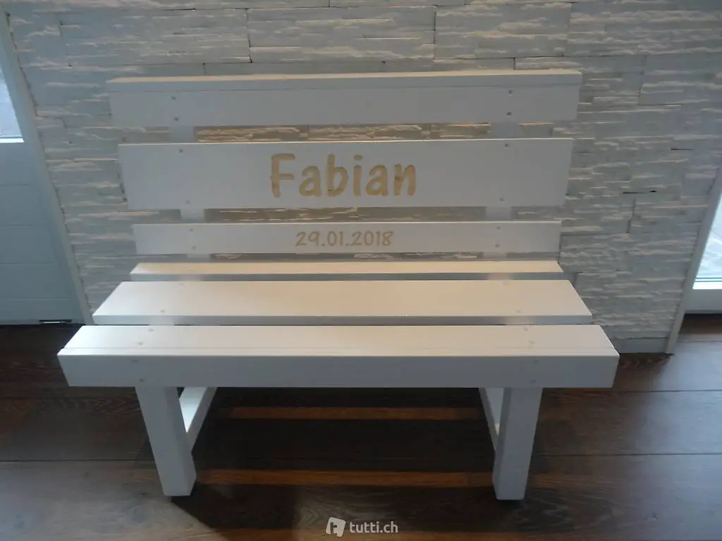 Massivholz-Kinderbänkli aus eigener Produktion.