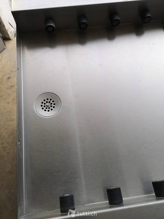 Arbeitstisch mit Räder aus Chrom Stahl ausser holzplatten natürlich, wird verkauft si komplett wie auf Bilder ersichtlich, wanne ist mit Ablauf versehen. Man kann diesen