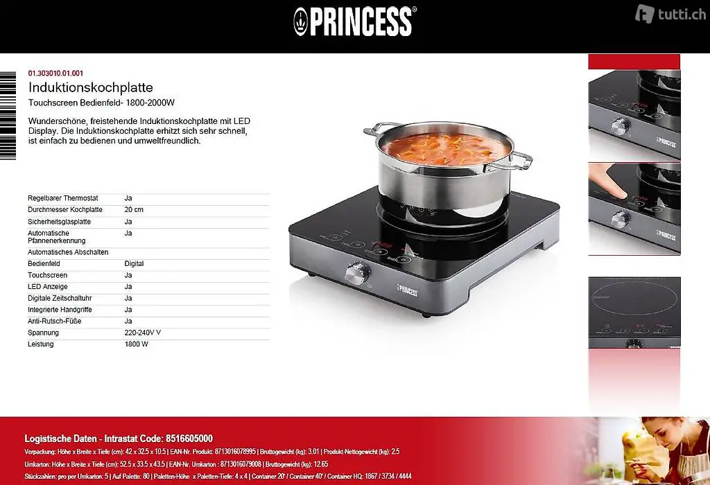 Display. Die Induktionskochplatte erhitzt sich sehr schnell,