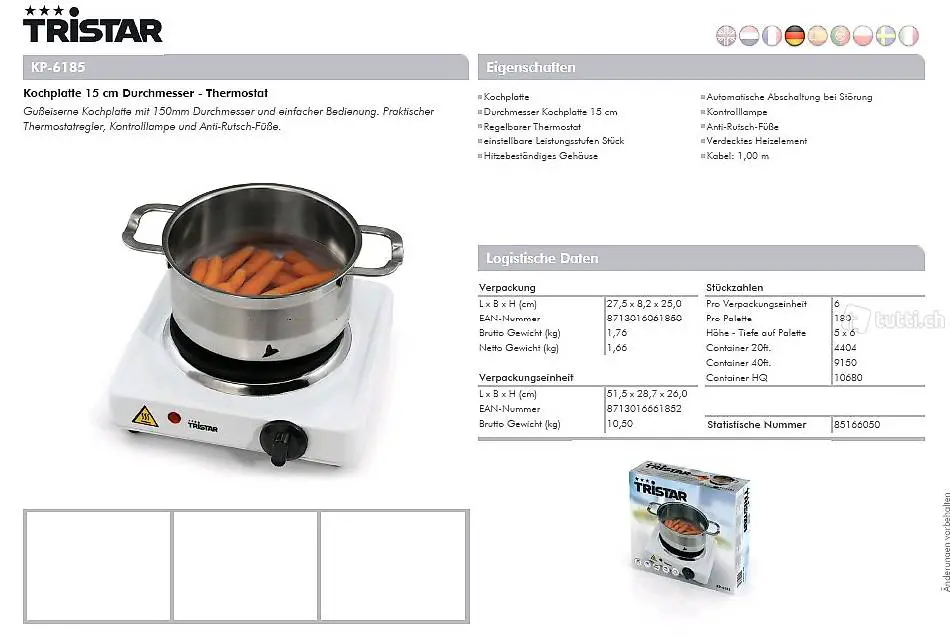 TRISTAR Kochplatte 15 cm dm - mit Thermostat