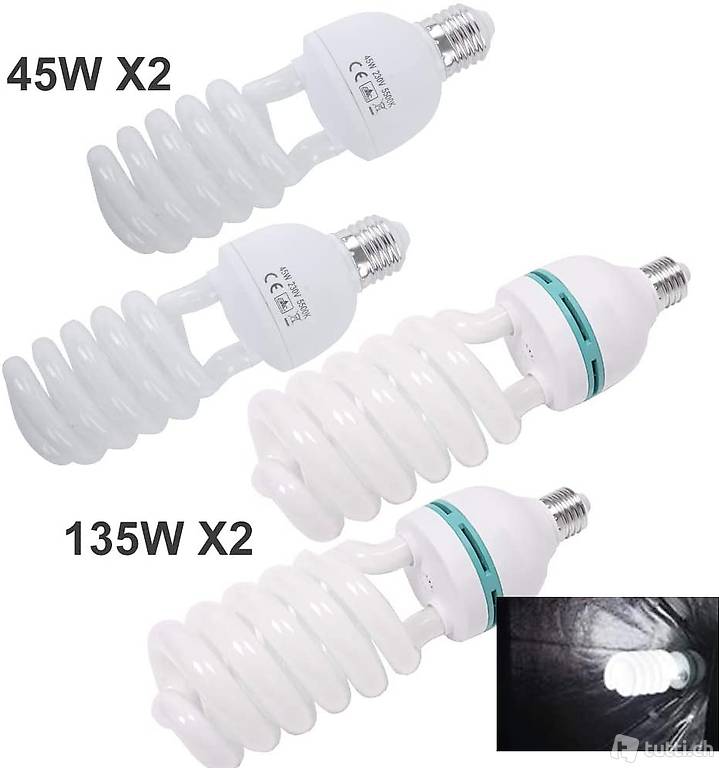 Leuchtmittel: 135 W 5400K Energiesparlampen.