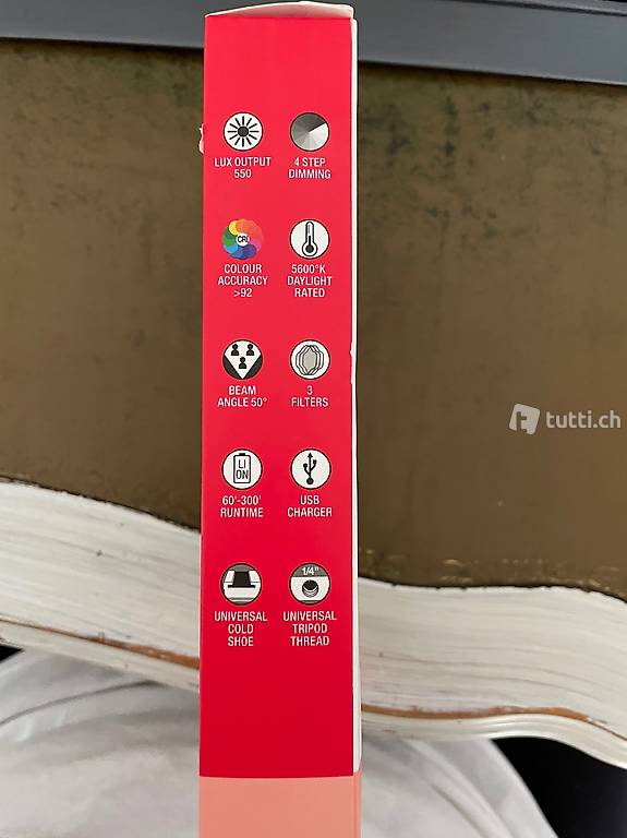 Extra-Licht für Foto-/Videoaufnahmen. 4 Stufen dimmbar und mit 3 getönten Scheiben für etwas mehr