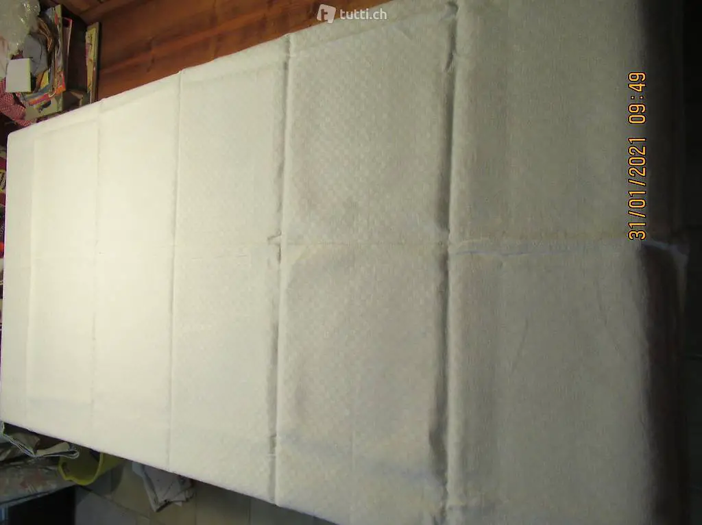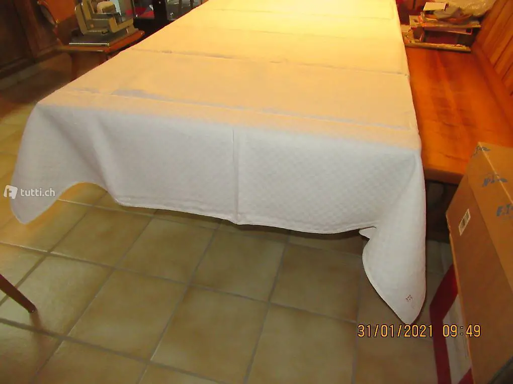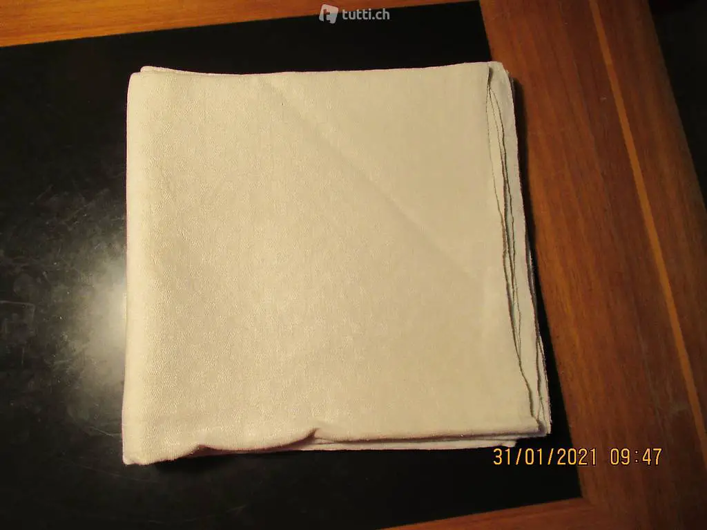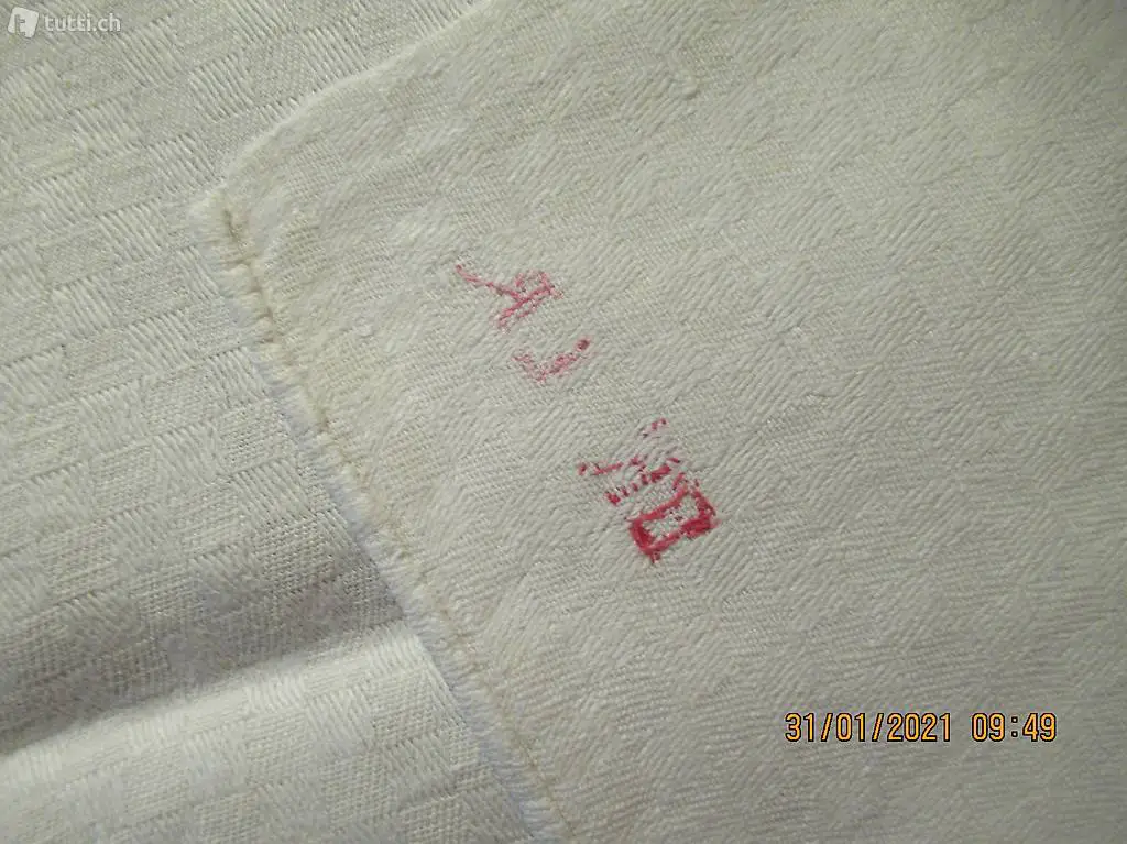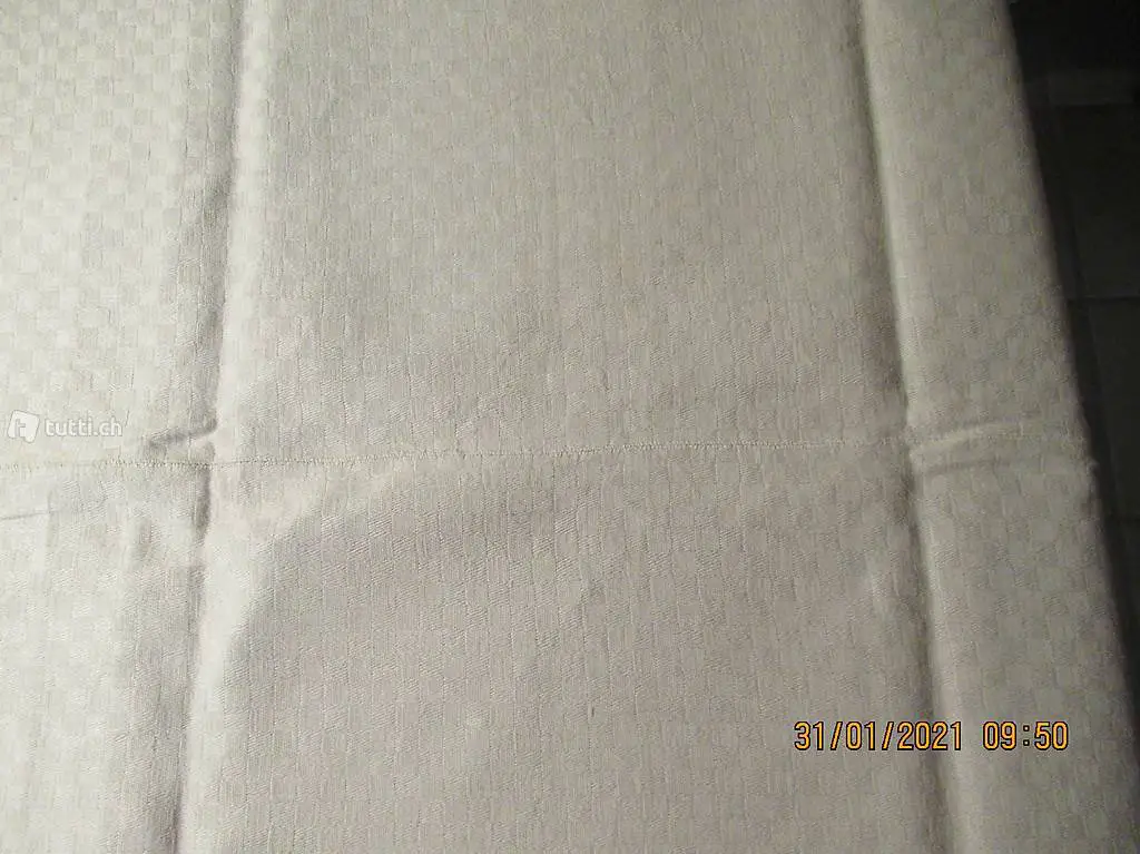 nicht Schneeweiss etwas leicht Cremig, mit eingestickten Initialen, Masse 135/180,