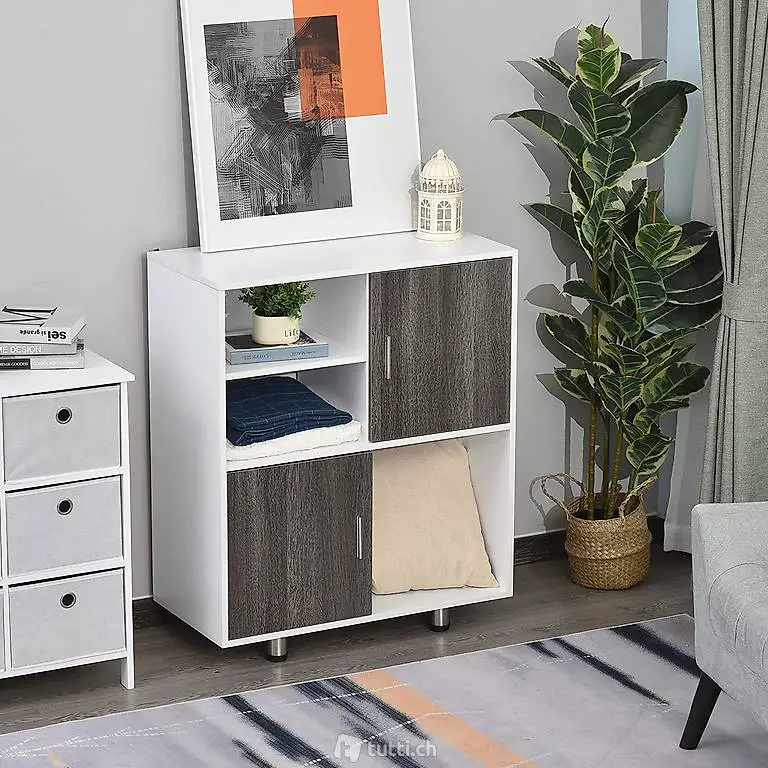 Küchenschrank Würfelregal mit offene Ablagefächer, Weiss+Grau,