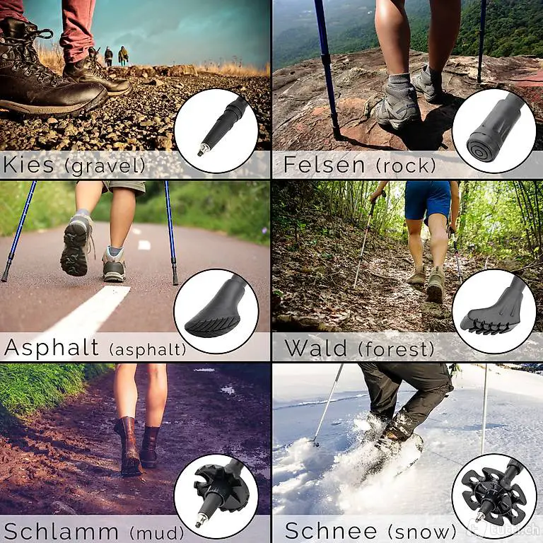 - 1 Paar ATTRAC® Trekking Stöcke inkl. Gummipuffer, 3 Paar Pads, 2 Paar Teller