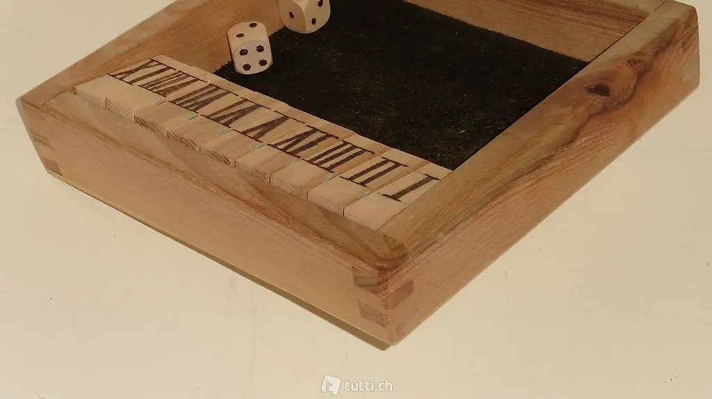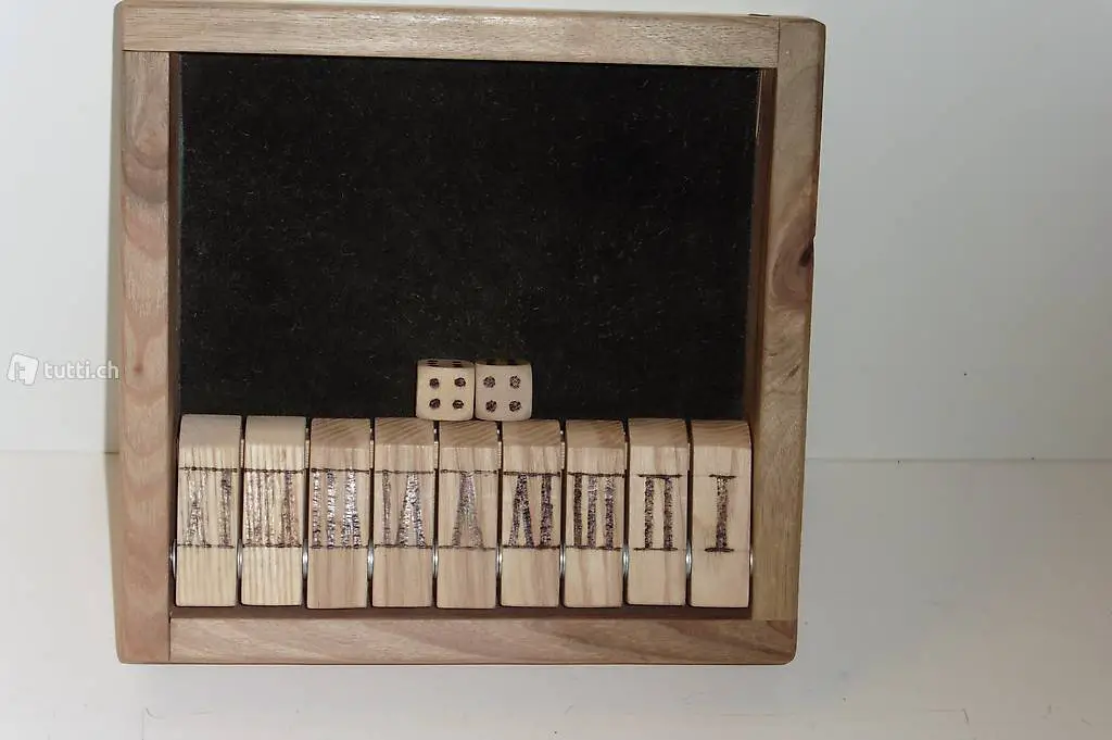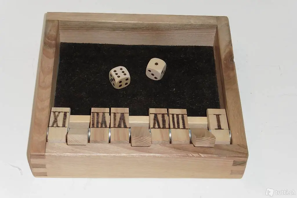 Es geht darum die passenden Klappen zu den gewürfelten Augen umzulegen.