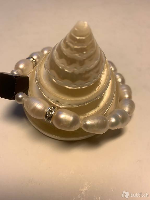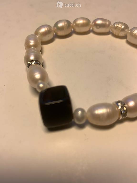 und Onyx (12 mm) Die Länge beträgt 20 cm. Auf Gummizug aufgezogen. Perlen Grösse 10--15 mm. Farbe Weiss. Versand 2 chf