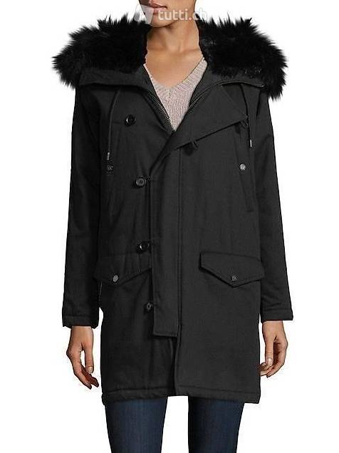 Abnehmbare Kapuze mit Waschbärpelzbesatz und verstellbarem Kordelzug