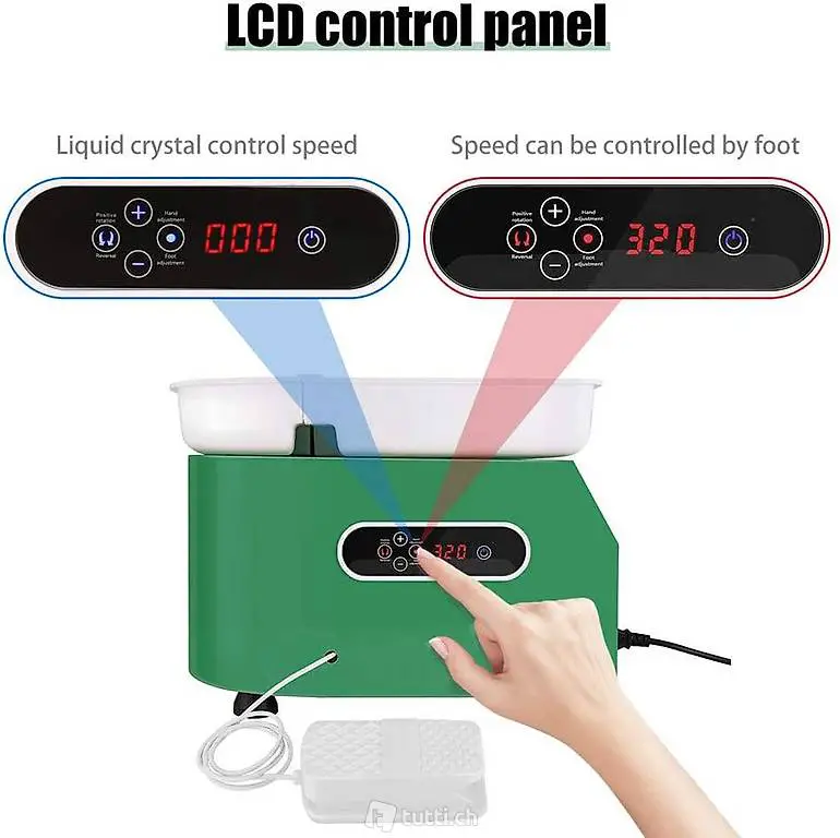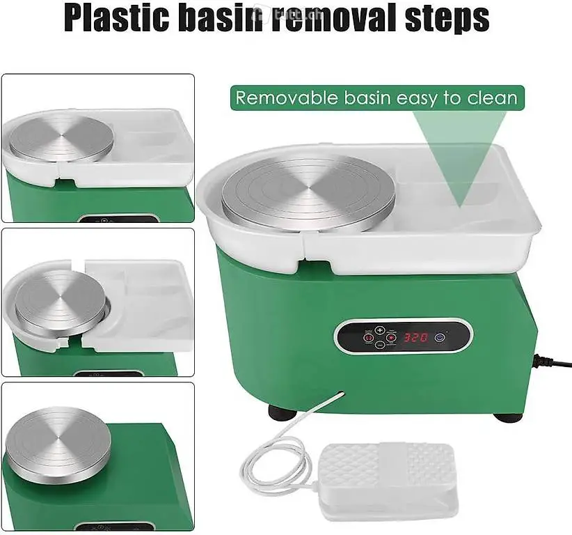 25CM elektrische Töpferscheibe Keramikarbeit Tonhandwerk DIY Bastelwerkzeuge mit abnehmbarem ABS-Becken, 11PCS Pottery Clay Tool (Grün)