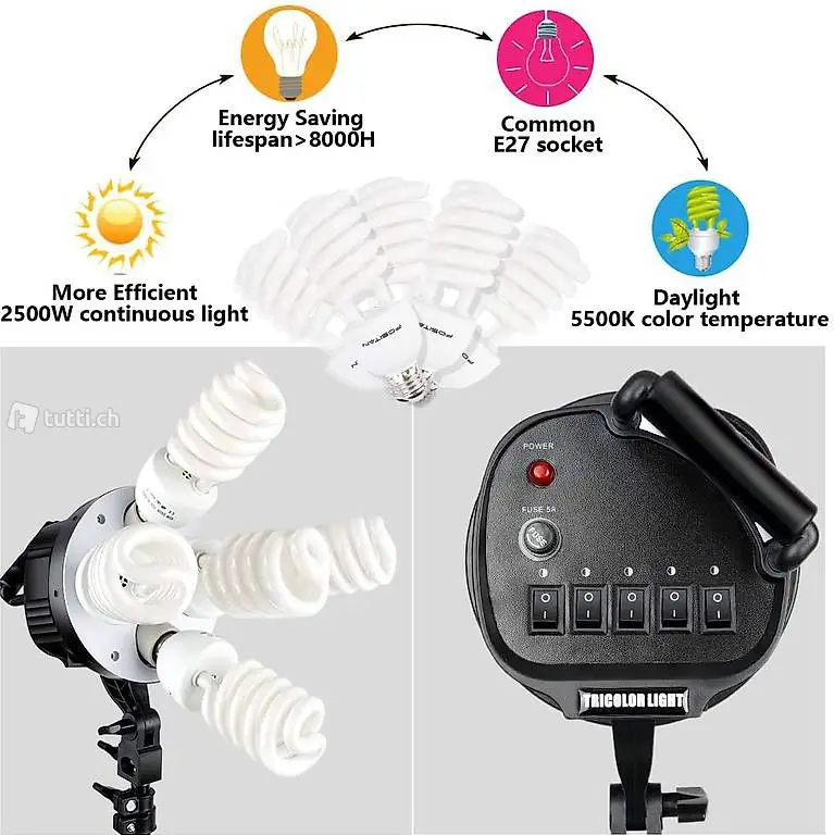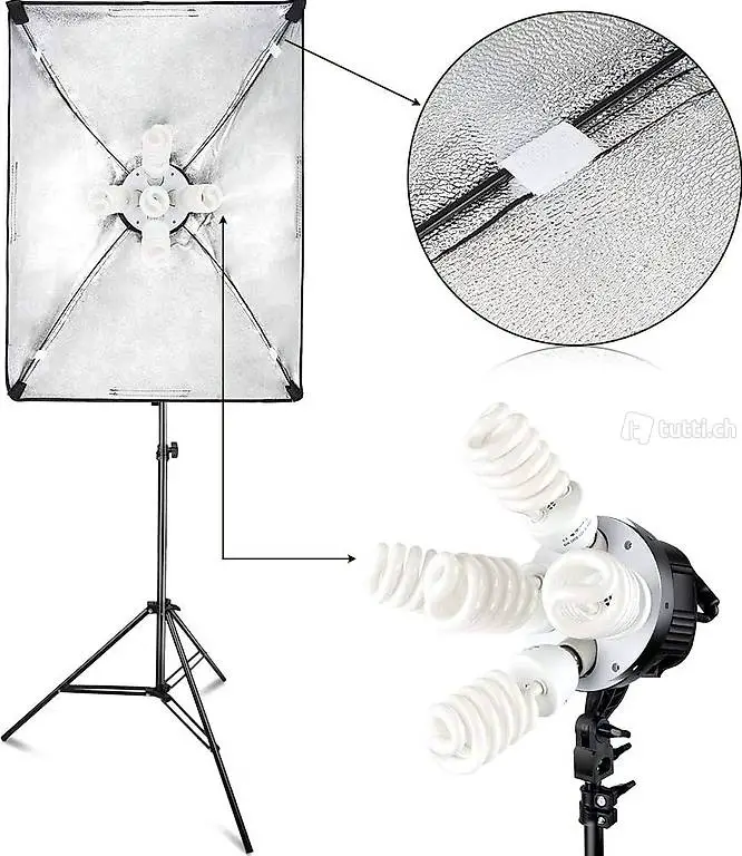 3 Softboxen - Ausgestattet mit 11x 45W CFL Tageslichtlampe, Das innere reflektierende Material der Softbox macht das Licht gleichmässiger. Das äussere weiche