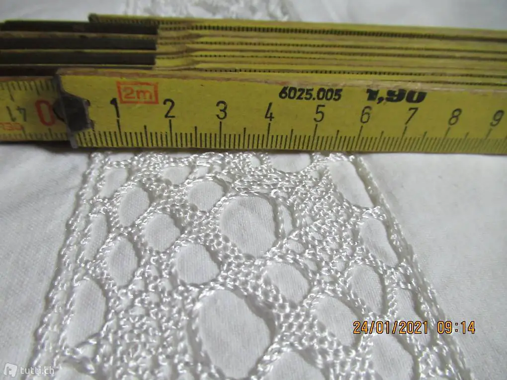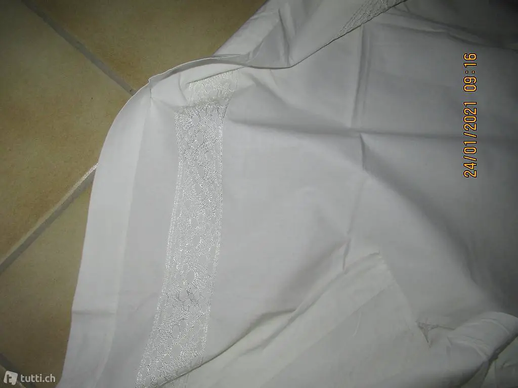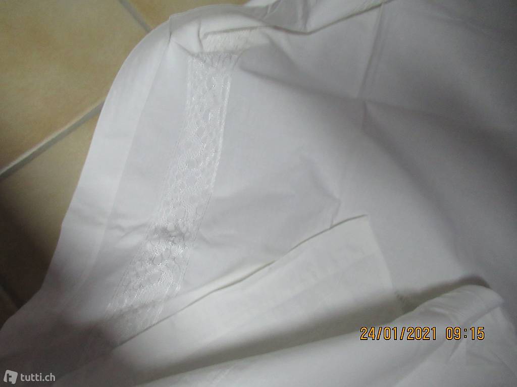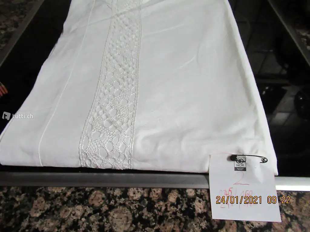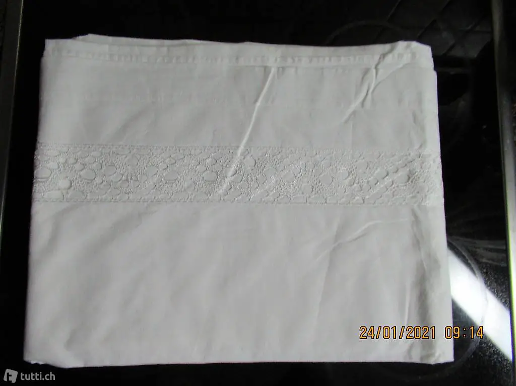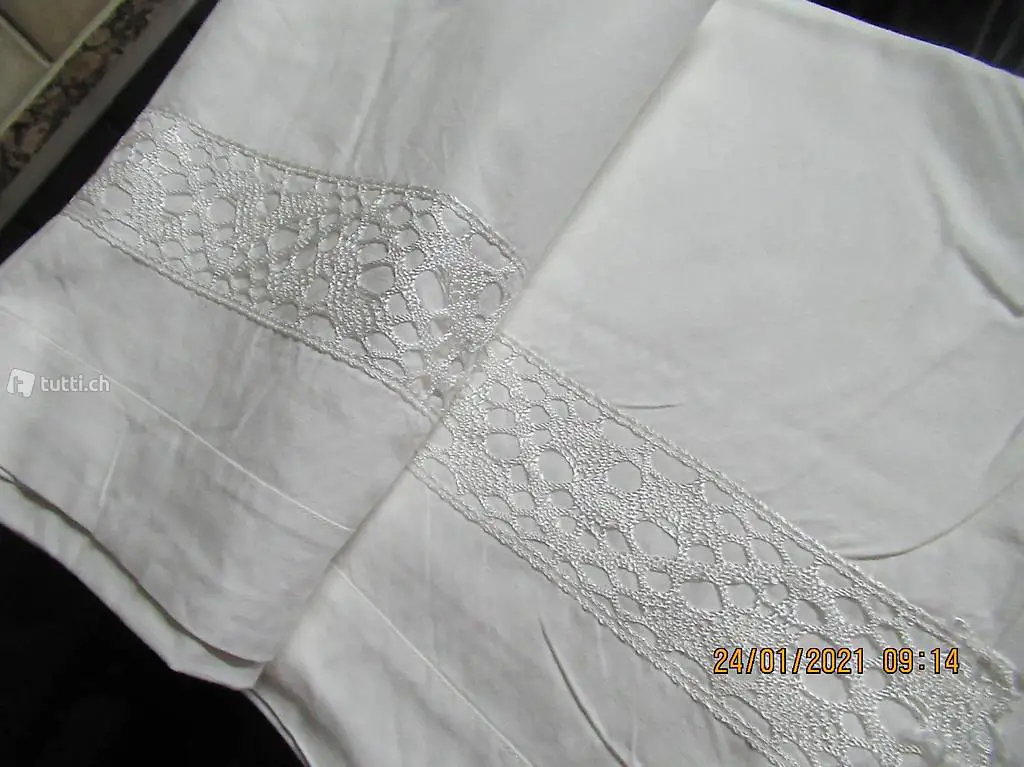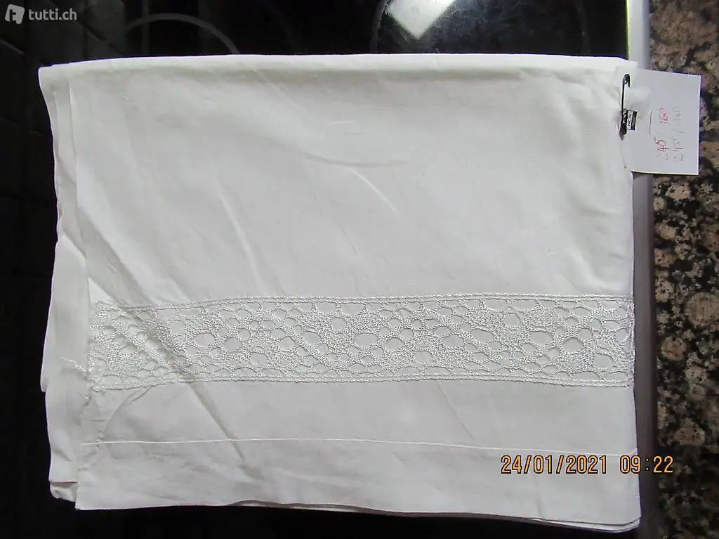 Leintuch, Bettlacke mit eingearbeiteter Klöppelspitze