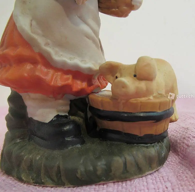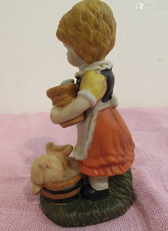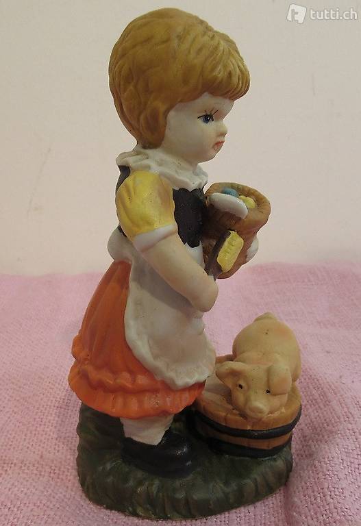 Herzige Figur eines kleinen Mädchen mit einer kleinen Sau. Leider hat es keine
