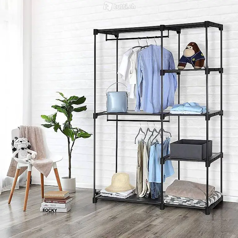 SO KANN DIE NÄCHSTE SHOPPINGTOUR KOMMEN! Hängen Sie Ihre neu gekaufte Kleidung ordentlich auf die 2 Kleiderstangen und legen Sie Ihre Lieblingstaschen auf die Ablagen. Alles griffbereit in dieser