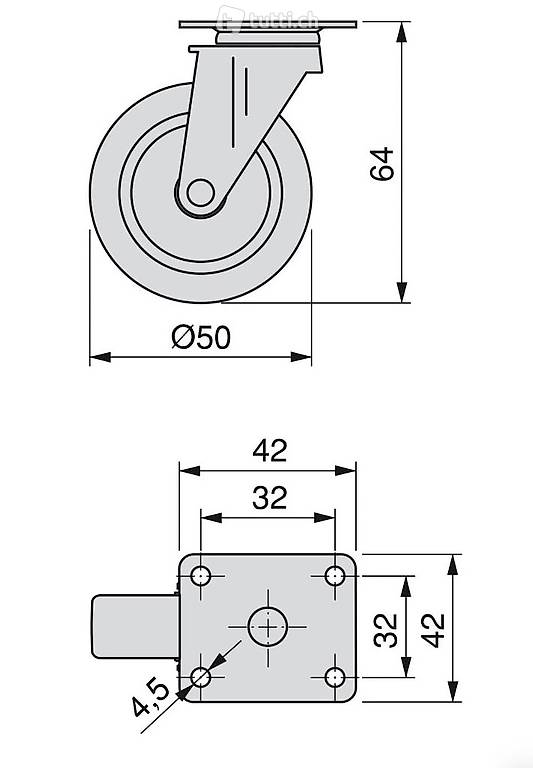 Anschraubplatte und Kugellager, schwenkrollen gummi aus grau Farbe