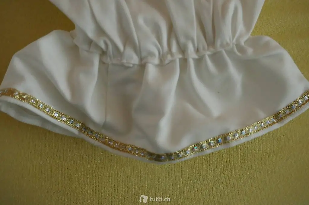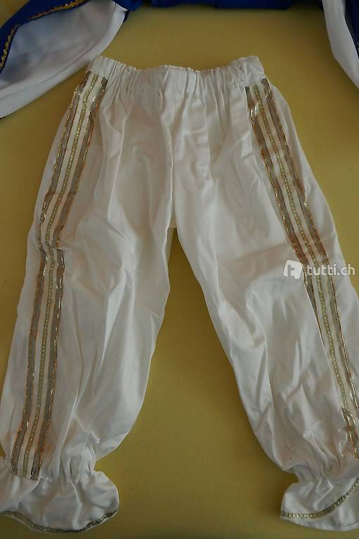 - selbst genähten weissen Hosen mit schönen Streifen auf der Seite und Gummizug, um die Hosen enger zu machen