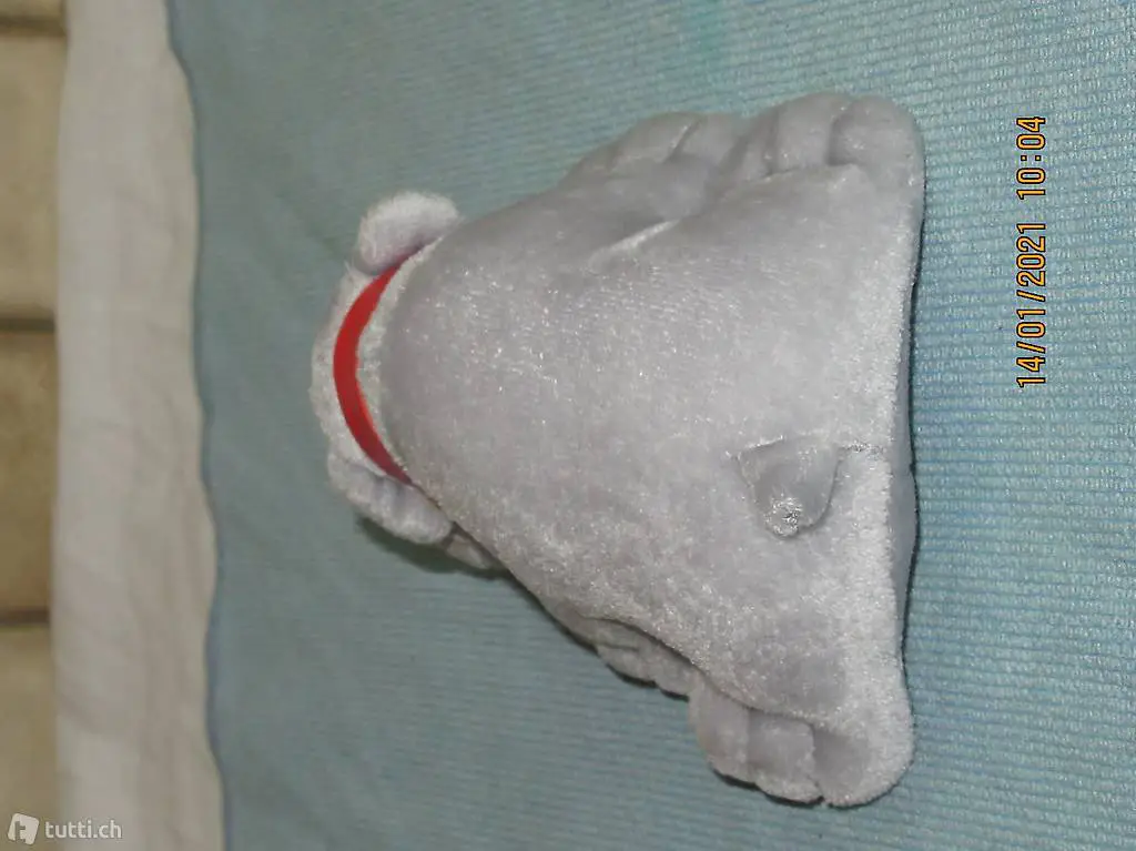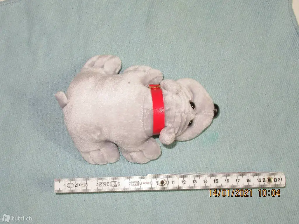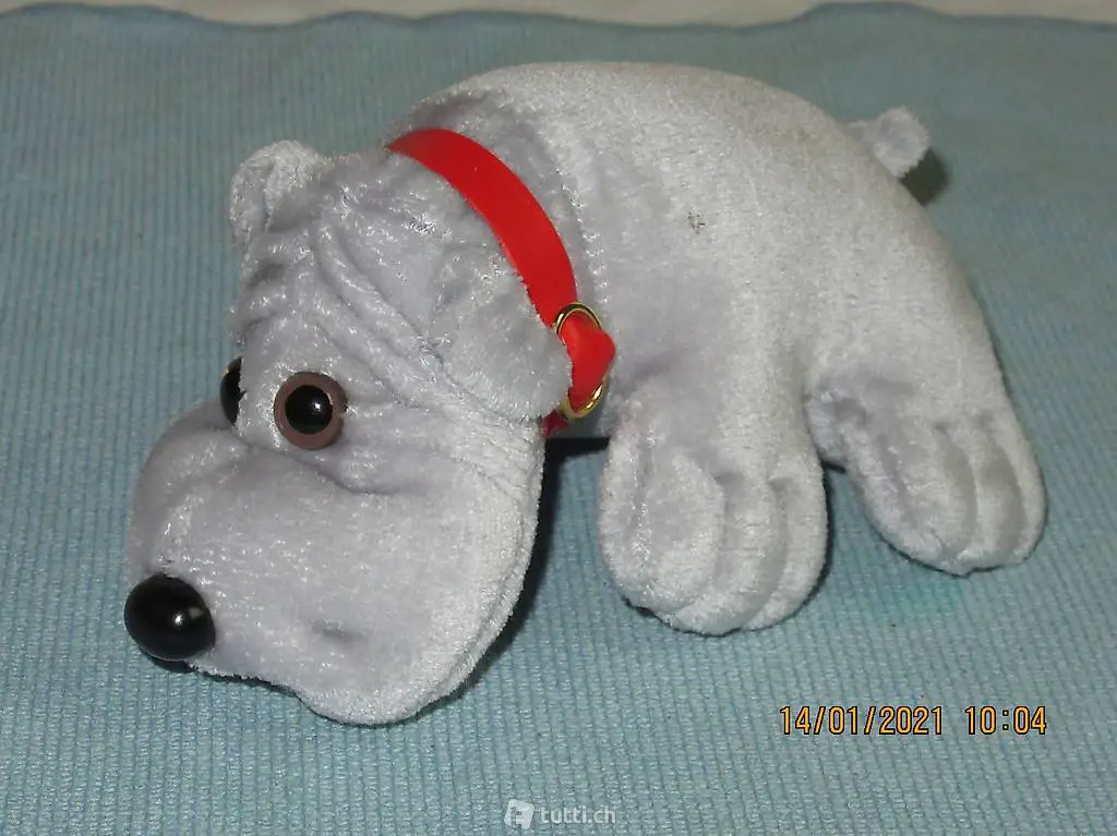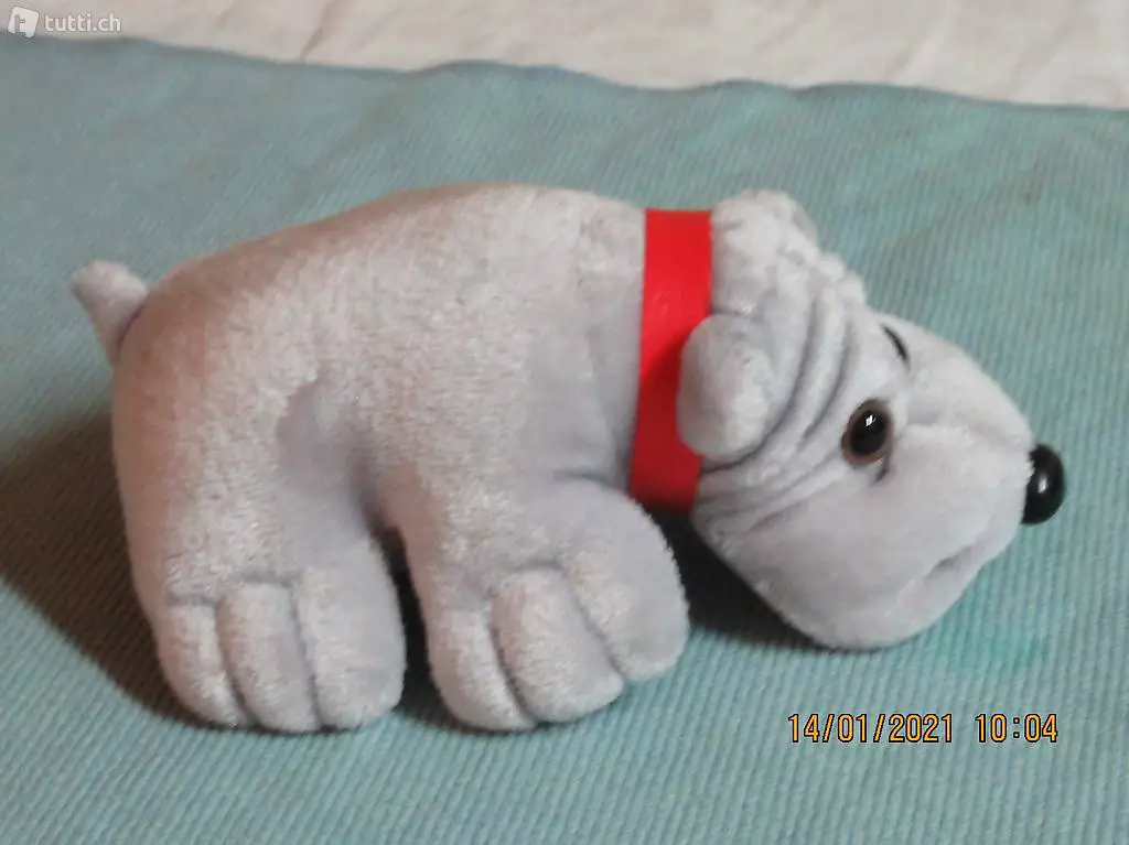 Plüschtier, Kuscheltier, könnte aber auch einen Hund sein, so einer mit Gesichtsfalten, so ein Saberi, weiss leider der Name dieses Hundes nicht