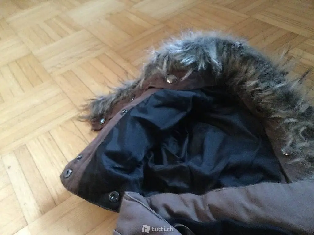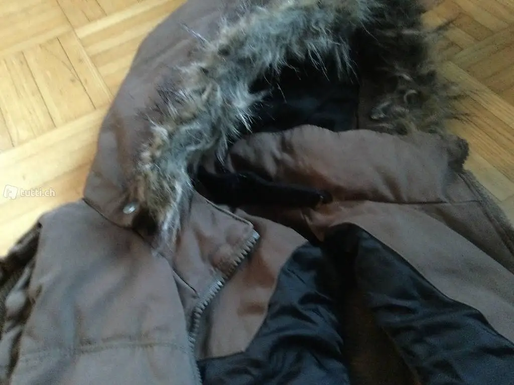 Daunenjacke ohne Ärmel, Daunenweste, Daunengillet, gebraucht, guter Zustand, grösse mit XS angegeben. Kapuze kann abgenommen werden so wie der Fellrand.