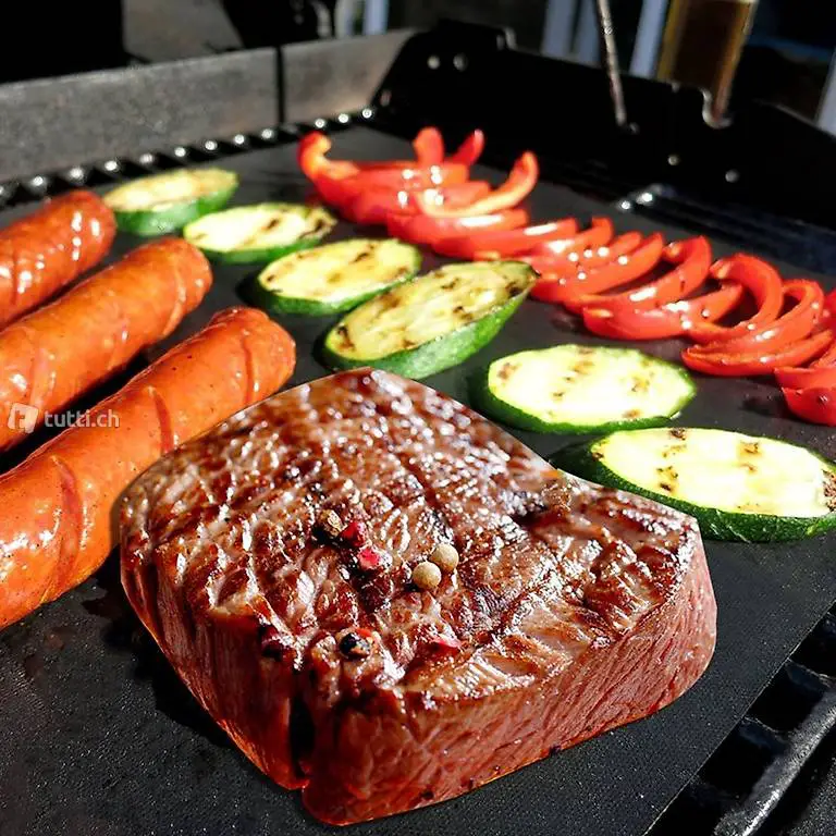 Auf der Grillmatte garen Sie Ihr Fleischstück herrlich saftig und lecker - ohne dass Marinade oder Bratensaft den Rost verschmutzt. Der Grill bleibt sauber!