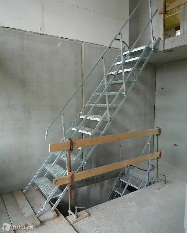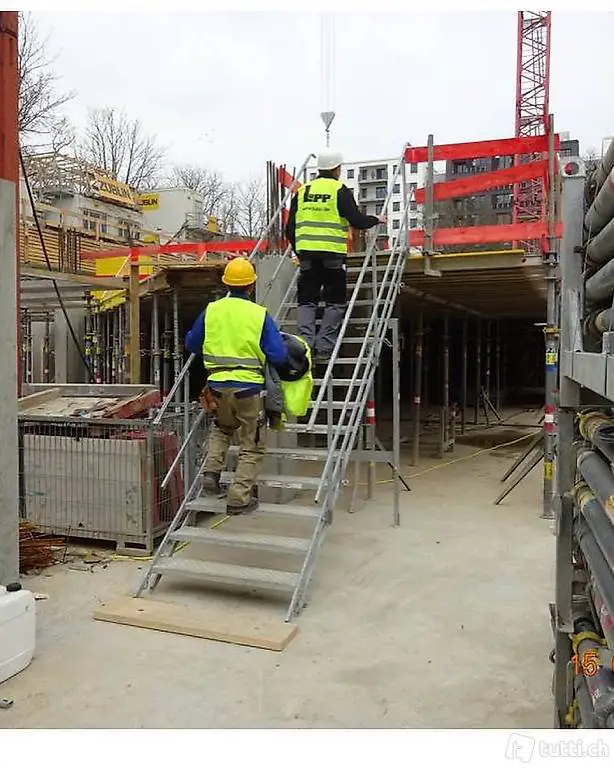 Jede Bautreppe wird mit zwei Handläufen geliefert, die sich dem Neigungswinkel der Treppe anpassen. Ab 640.- Franken