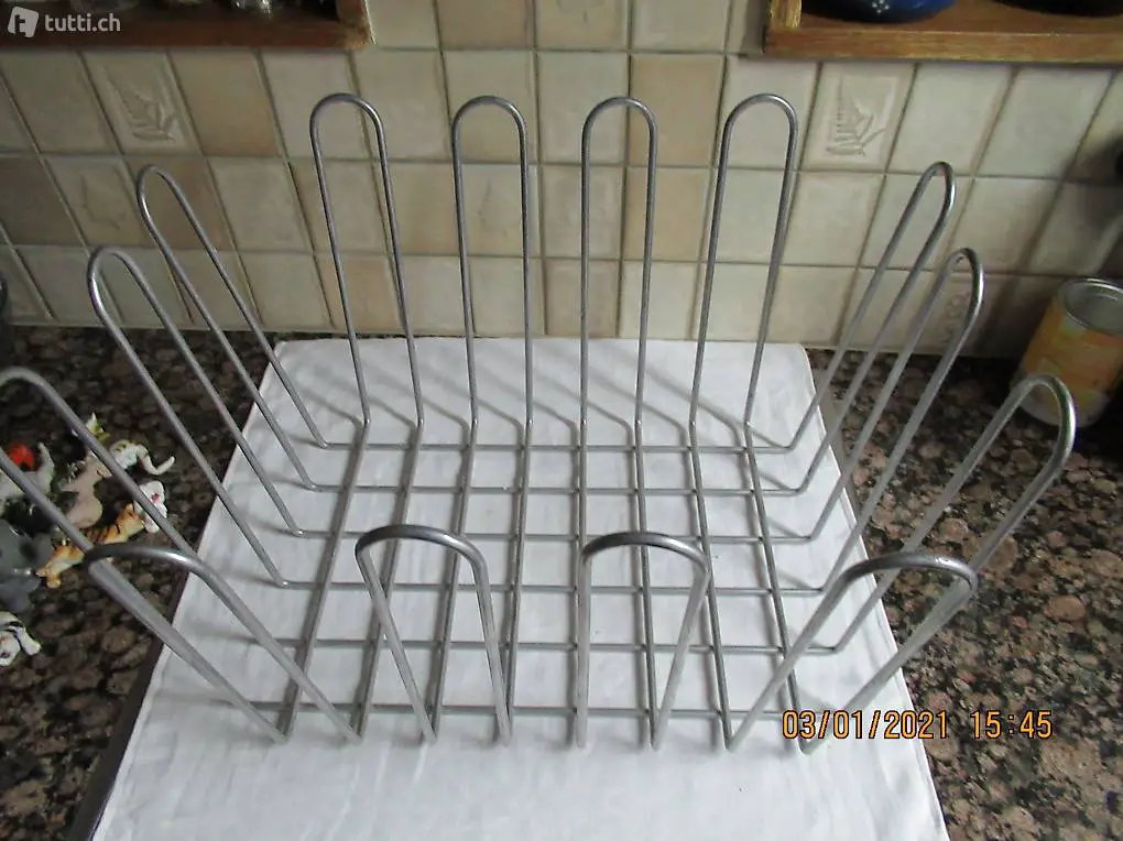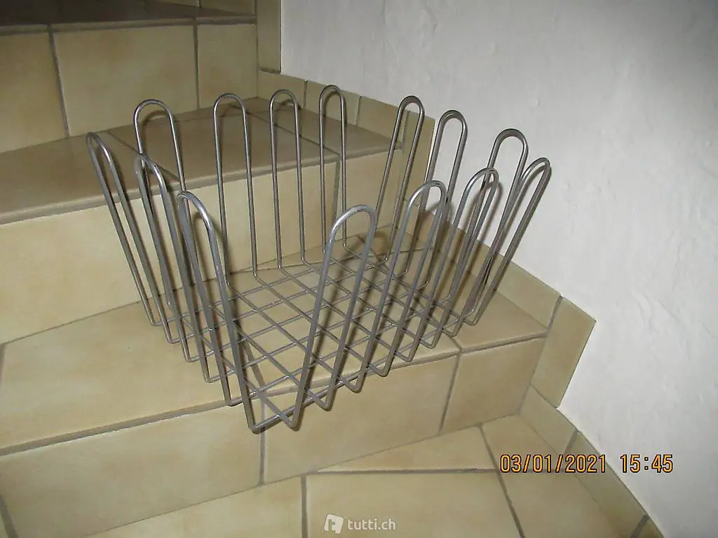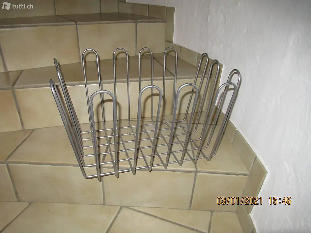 Zeitung, Zeitschriftenständer, Altpapierständer, Papierständer, aus Chromstahl, kann am Schluss ganz einfach mit der Schnur zusammengebunden werden, da von allen Seiten zugänglich. Masse siehe Bilder 50/40/30