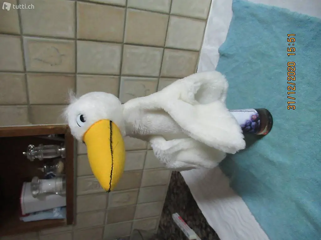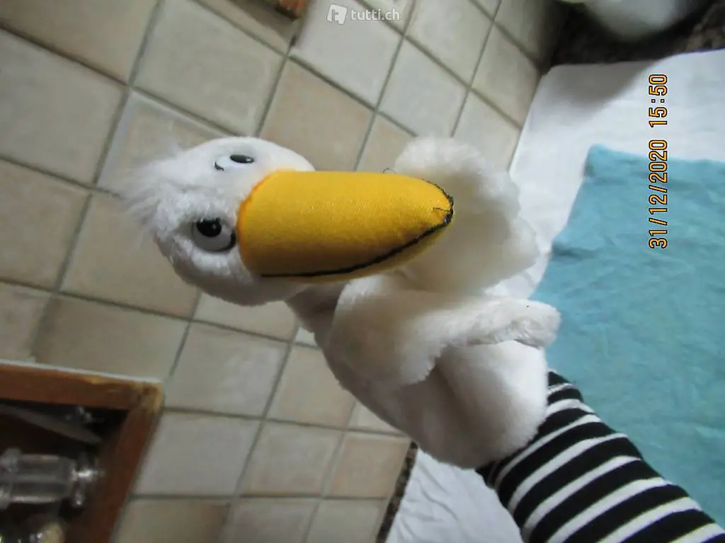 Handpuppe, weisser Rabe, Storch