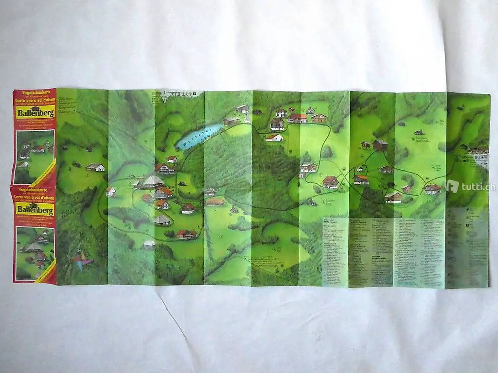 Vorderseite: Vogelschaukarte mit Legende.
