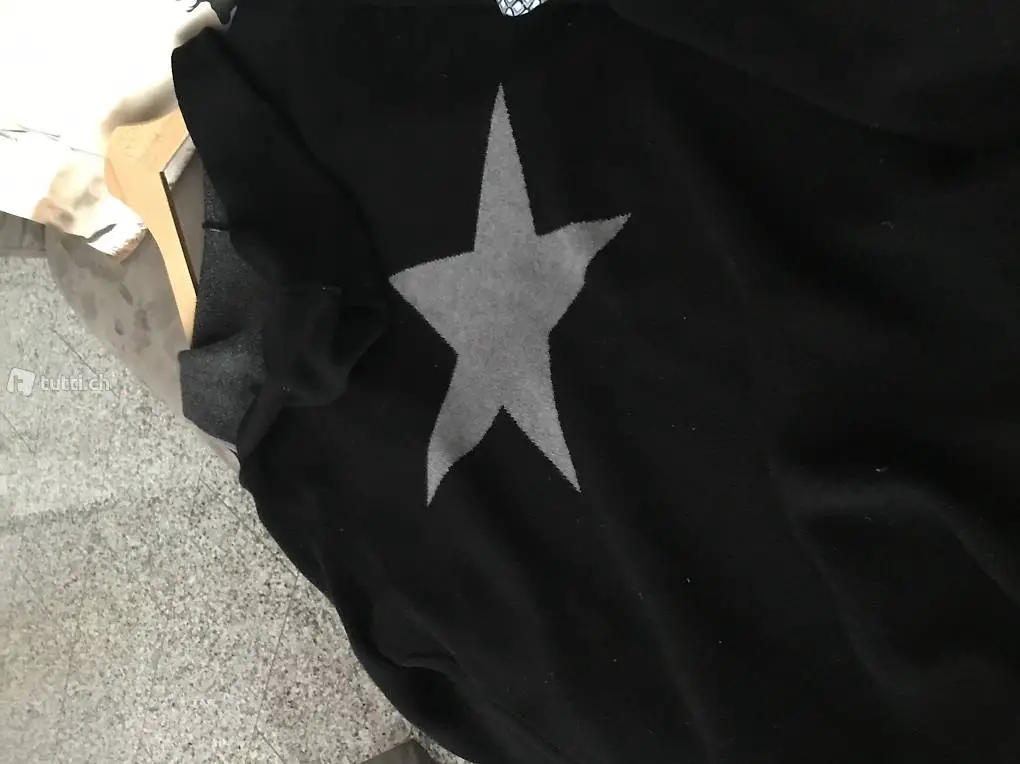 , schwarz mit Stern auf der Rückseite, mit Kapuze, Länge 83cm
