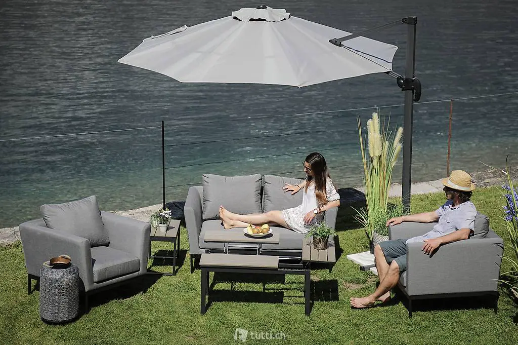 Loungemöbel, dank des speziellen Sunbrella Stoffbezuges und ihrer intelligenten Bauweise die so das ganze Jahr über zum Einsatz kommen können.