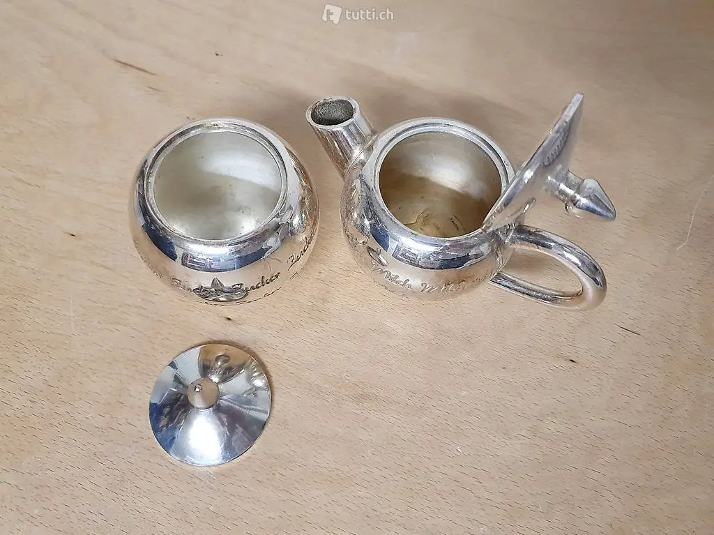Milchkännchen und Zuckerdose, versilbert, wird noch poliert