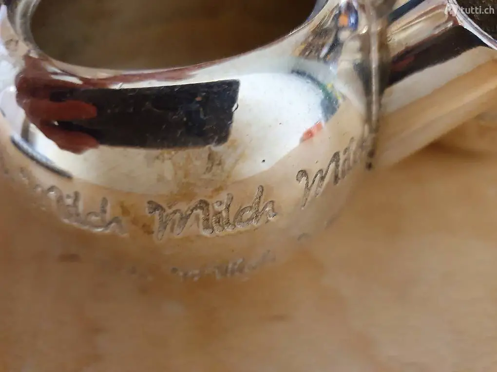 Milchkännchen mit Gravur: Durchmesser ca. 8cm, hoch ca. 10 cm