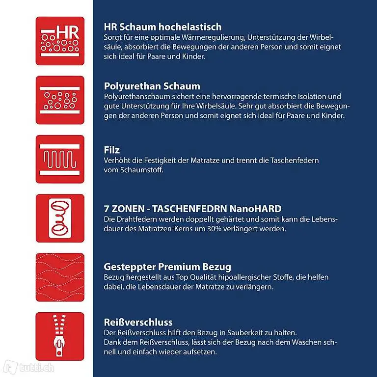 antibakteriell und für Allergiker geeignet, die optimale Temperatur des Latex gewährleistet eine gute Verdunstung der Körperfeuchtigkeit, bietet eine perfekte Druckentlastung und passt sich Ihrem Körper optimal an