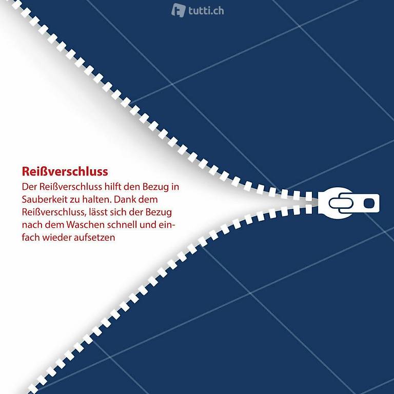 Reissverschluss versehen, abnehmbar und waschbar. Bietet ein Höchstmass an Frische und Hygiene.