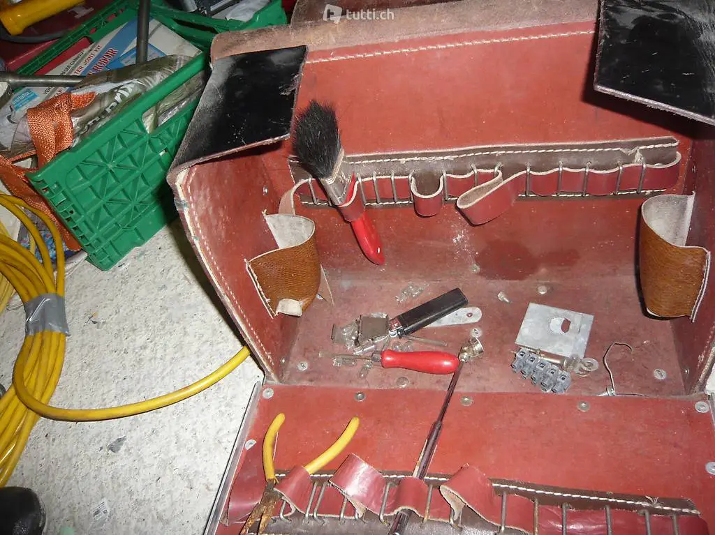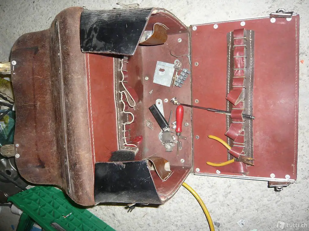 Werkzeug koofer Leder mit Paar sache