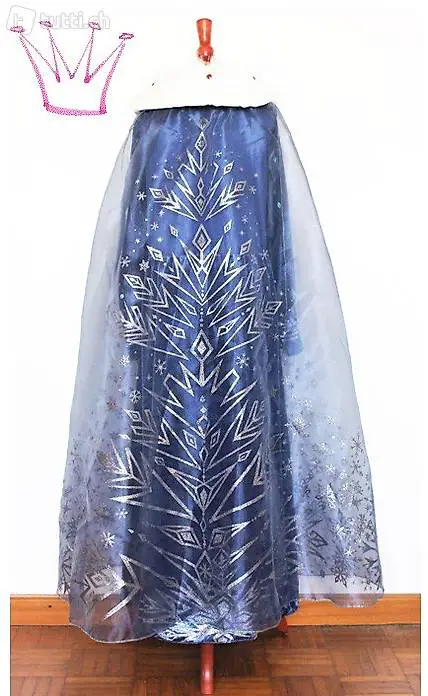 Dieses Frozen-Kostüm glitzert wunderschön und auch das Cape ist mit silbernen Glitzer-Symbolen bedruckt. Der