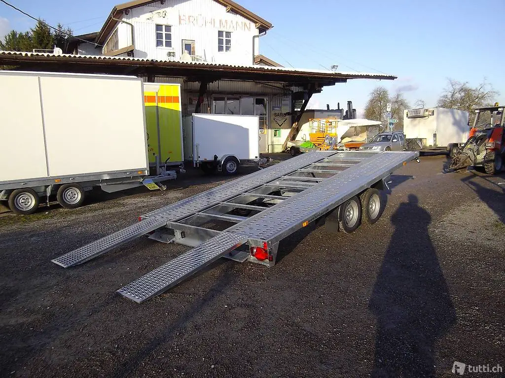 Wir verkaufen neuen Autotransportanhänger der Eigenmarke Brühlmann.