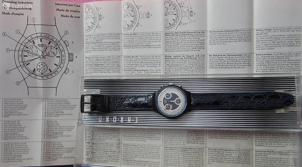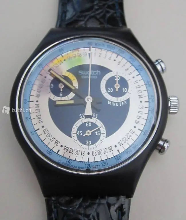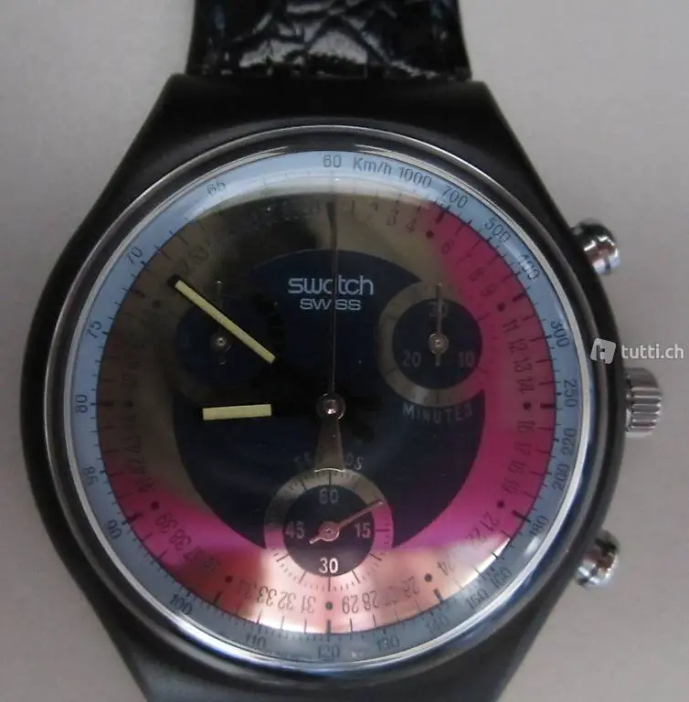 Das Originale Swatch Lederarmband sowie die Uhr sind beides noch zu 100% intakt, keine Gebrauchsspuren, da nie getragen.